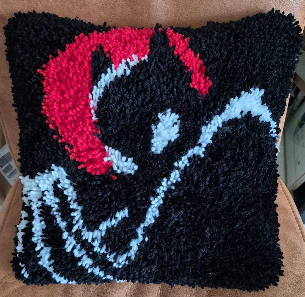 Flott pute og morsom jobb å få den ferdig, det manglet litt garn men det skulle de ettersende så håper det kommer snart..:-)